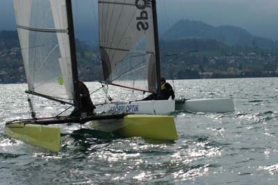 Les 29 et 30 avril, 4 classe de catamarans (A-Cat, Tornado, Dart et 18HT) se sont retrouvés à Spiez pour débuter la saison des régates. Le nouveau responsable du YCSP – Daniel Brun – accompagné de son équipe, a organisé l’événement de belle manière. Nous avons pu courir 5 manches sur les deux jours, dans des vents thermiques de 2-3 Bft. Il a en revanche fait assez froid pour que quelques régatiers ne courent que 2 manches le samedi.