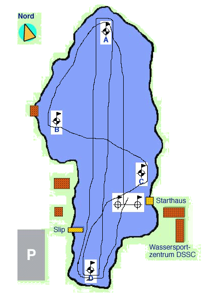 Le samedi quand on arrive, il faut bien sûr qu’il commence à pleuvoir quand on veut décharger les bateaux, mais la pluie c’est vite calmée. Nous sortons pour faire 4 manches sur un parcours pas comme les autres.