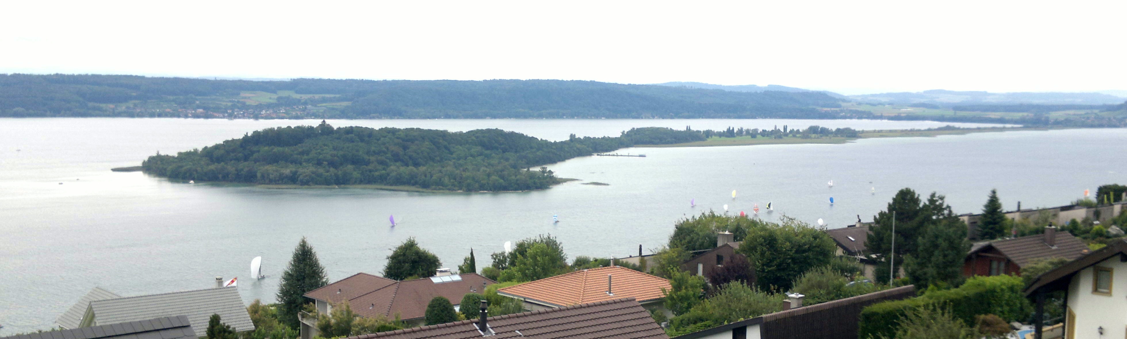 photo J.-J. Botteron. 1er passage de l’île samedi. Impressionnante régate vue depuis Schernelz.